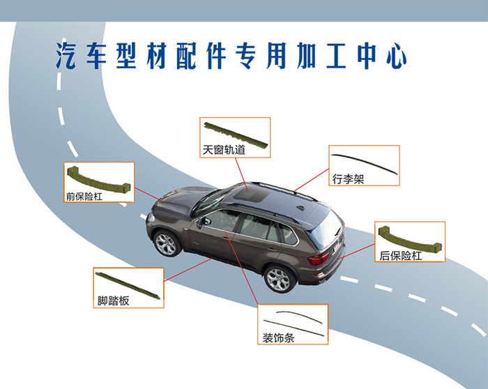 羅威斯鋁型材加工中心具有高速、高精度、穩定性強等特點,對于汽車行李架、天窗導軌、裝飾條、前后保險杠、腳踏等具有良好的解決方案,為汽車配件加工提供強有力的支持。