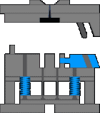 優點為加工方便,定位安全。常用于在x、y方向的行位,行程小的行位。彈簧的計算:首先要知道行位彈簧的預壓是說它在開完模走開扣位的情況下還有預壓,它的目的通過預壓產生的彈力來克服行位的重力不讓它往回走。