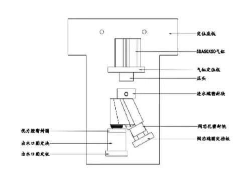 1、上圖是試氣工裝的參考圖,具體結構需依據產品的實際結構來設計,思路就是用盡可能簡單的方式密封產品,讓需檢測密封的部分充滿氣體來確認其密封性。
