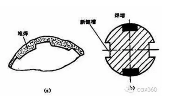可用氣焊或堆焊法修復磨損的齒側面,然后再以磨損的花鍵為基礎,銑出花鍵。鍵槽損傷后,可適當加大鍵槽或將舊鍵槽焊堵,并配新鍵。軸上的螺紋損壞時,應進行堆焊,重車螺紋。