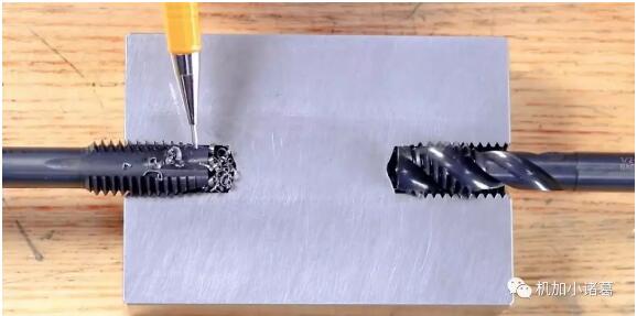 殘留切屑在絲錐反轉退刀時最容易使刃口崩刃甚至是絲錐斷裂: