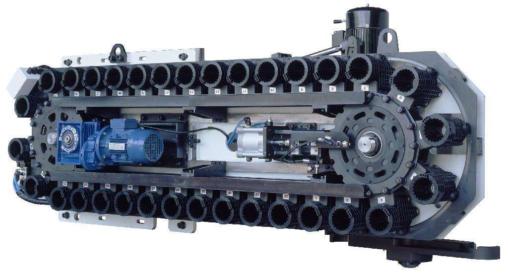上述三種圓盤刀庫是較常用的形式,其存刀量最多為50~60把,存刀量過多,則結構尺寸龐大,與機床布局不協調。